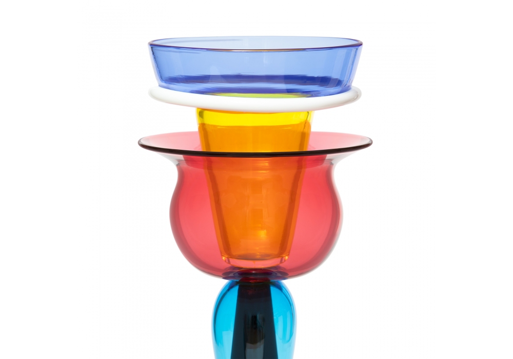 Imera diseñado por Ettore Sottsass para Memphis Milano es un jarrón de vidrio soplado.