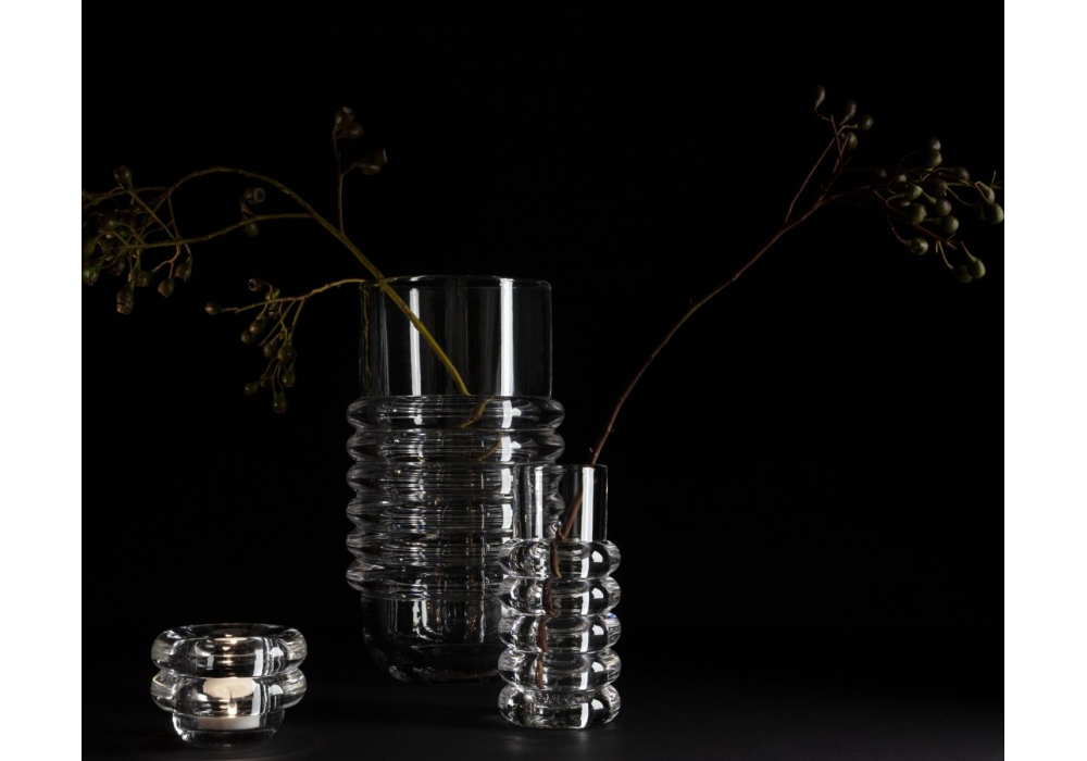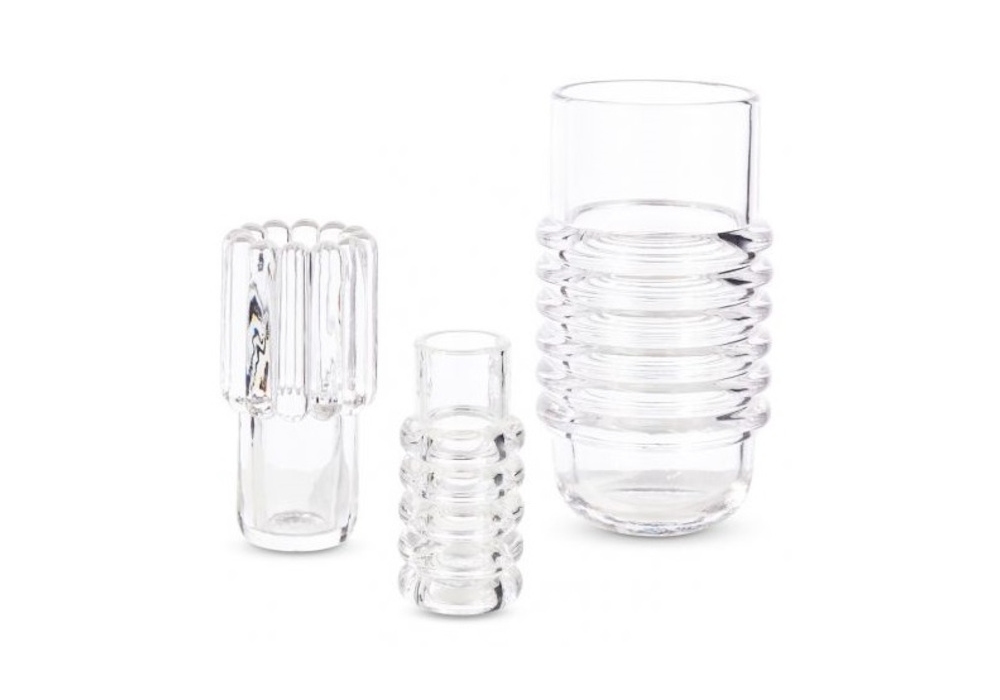 Press Large diseñado por Tom Dixon es un jarrón en vidrio transparente puro.