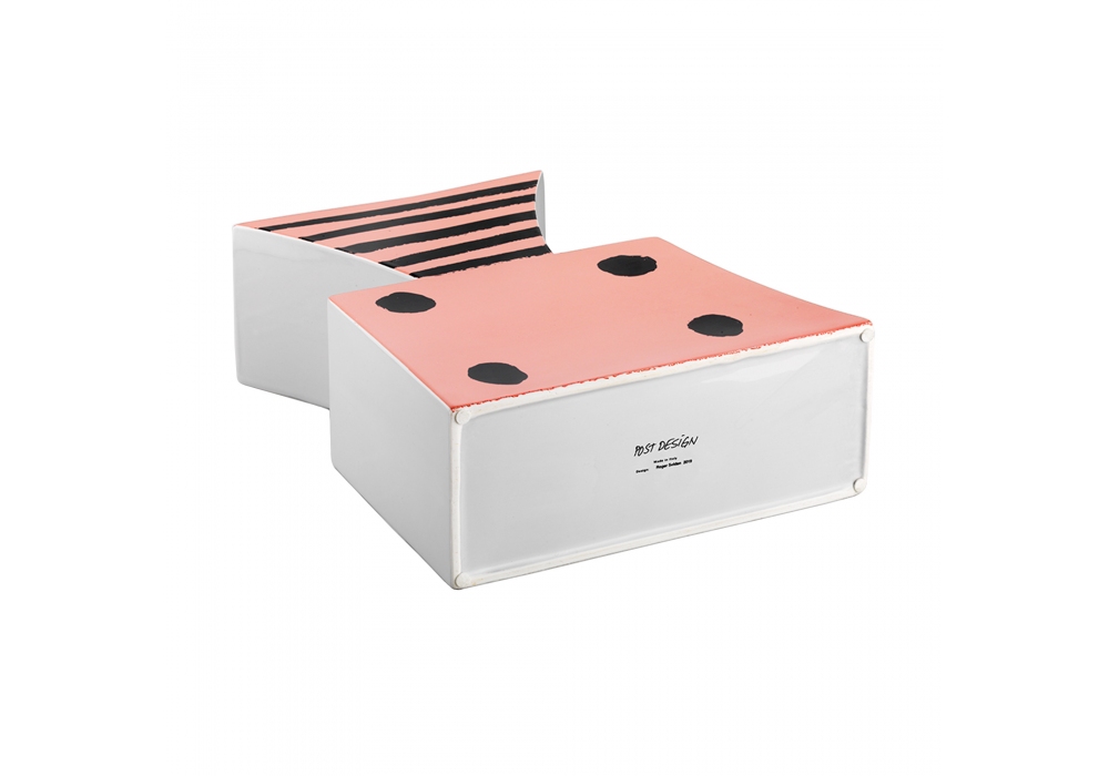 Candy diseñado por Roger Selden para Memphis Milano es un jarrón de cerámica con decoración de dos caras.
