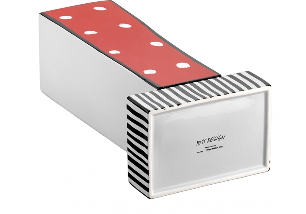 Tokyo diseñado por Roger Selden para Memphis Milano es un jarrón de cerámica con decoración de dos caras.