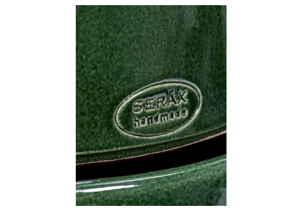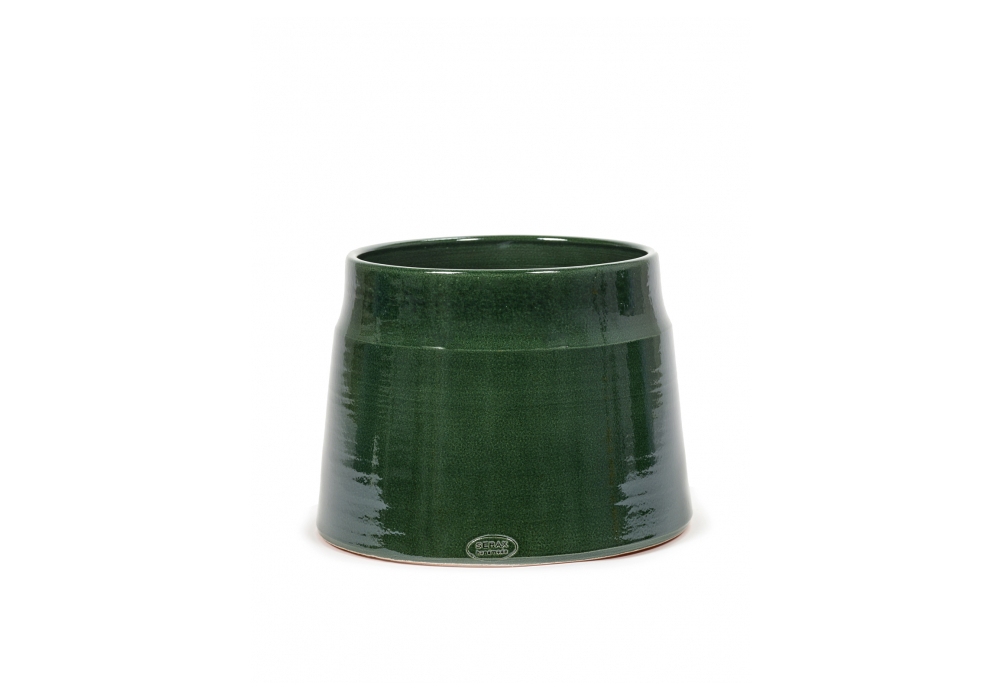 Flower Pot producido y firmado por Serax es un jarrón, está hecho completamente de cerámica cilíndrica y está pintado en un color verde oscuro. Flower Pot está disponible en tres tamaños diferentes.