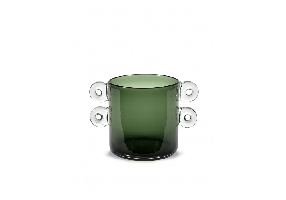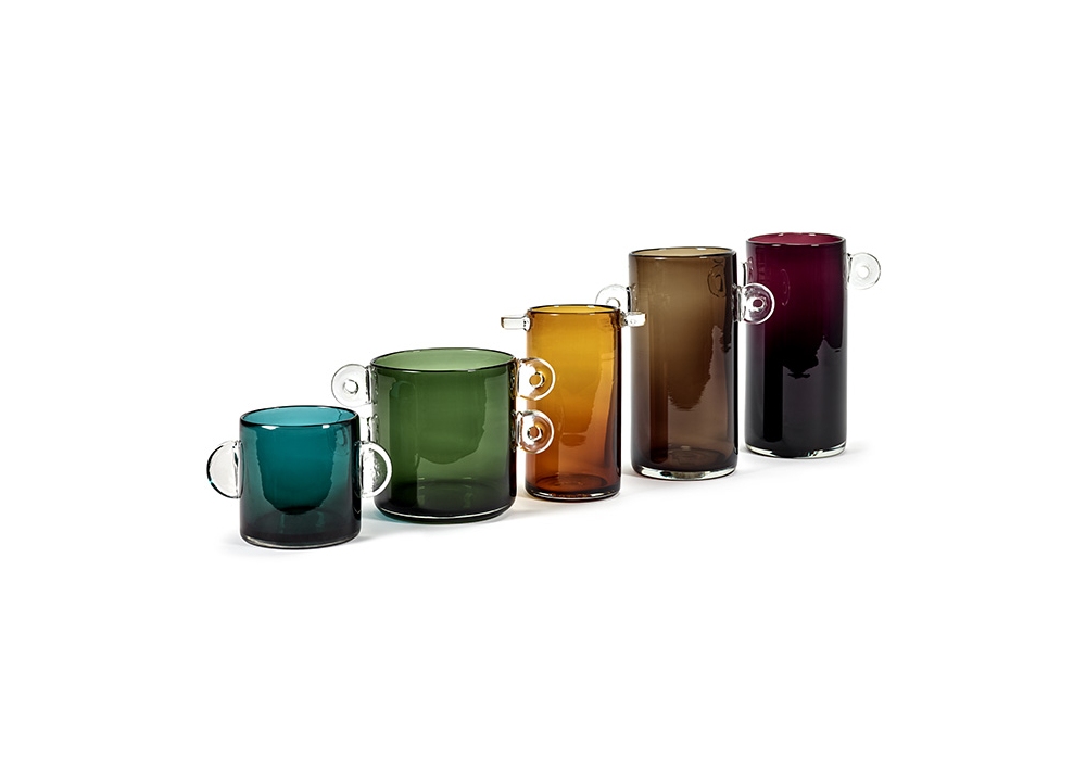 Vento & Fuoco diseñado por Marie Michielssen para Serax es un jarrón, completamente realizado en vidrio con forma cilíndrica con asas verticales u horizontales. Vento & Fuoco está disponible en cuatro modelos y acabados diferentes.