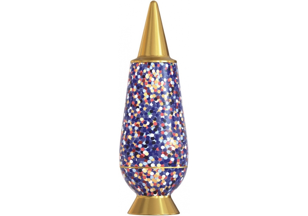 100% Make-Up Proust diseñado por Alessandro Mendini para Alessi es un jarrón con tapa, realizado en porcelana decorada y oro. Edición limitada de 999 ejemplares numerados y 3 pruebas de artista.