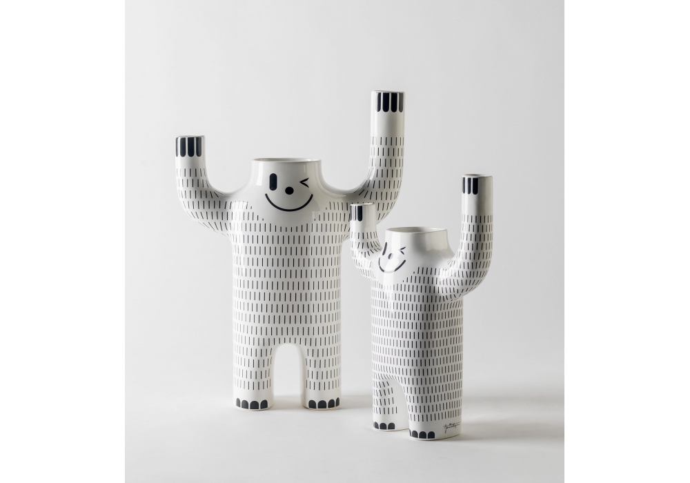 Happy Yeti diseñado por Jaime Hayon para BD Barcelona es un jarrón en cerámica blanca esmaltada y decoraciones en negro. Disponible en versión pequeña o grande.