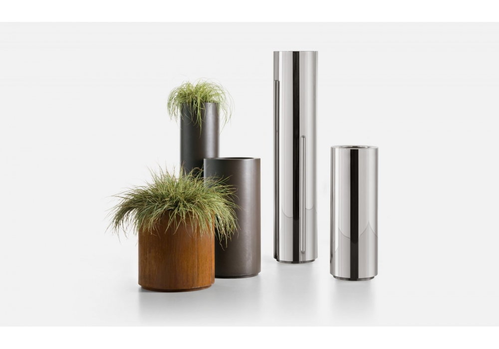 Cohiba diseñado por R&D De Castelli para DeCastelli es un jarrón de forma cilíndrica realizado en metal, completo con jarrón interno de plástico. Disponible en diferentes acabados, modelos y medidas.