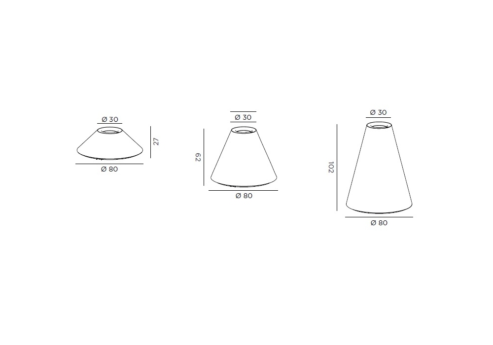 | Altura | • 27 cm; • 62 cm; • 102 cm |