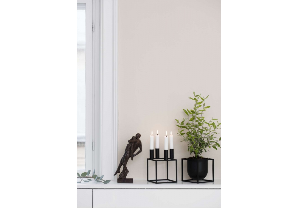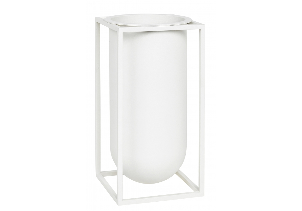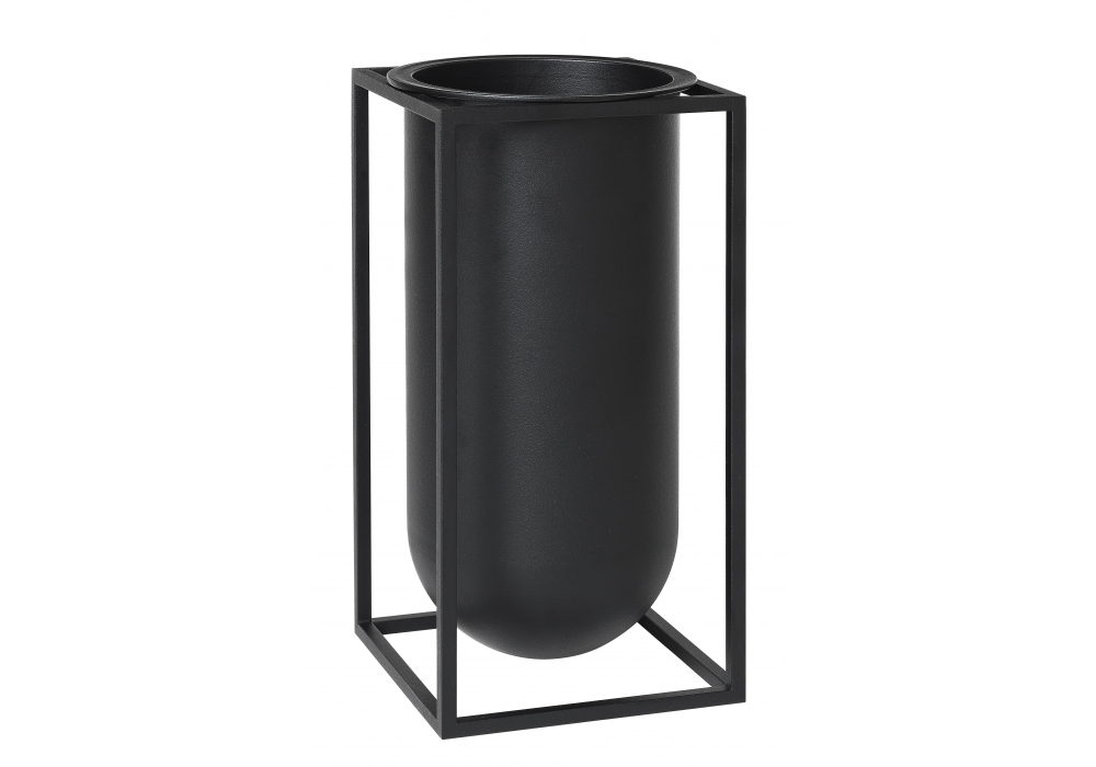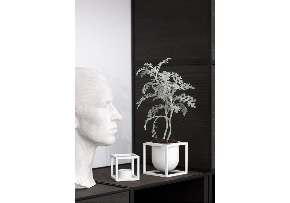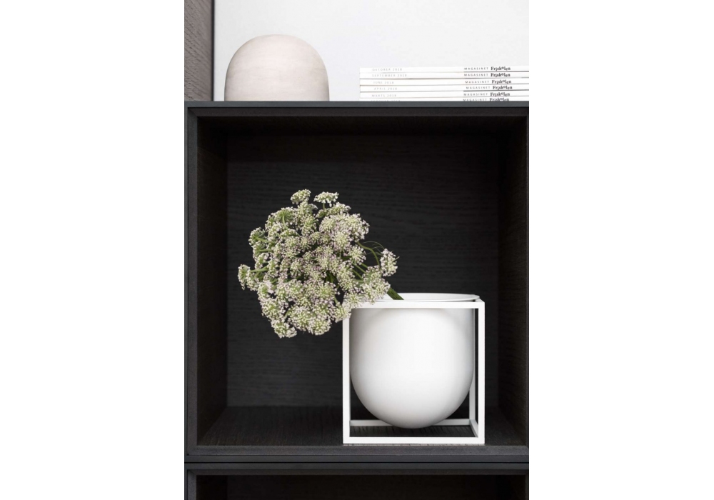 Kubus diseñado por Søren Lassen para Audo Copenhagen es un jarrón con estructura de metal pintado en polvo y dentro de un jarrón redondeado del mismo color. Incrustación de plástico y separador de flores incluido. Disponible en diferentes modelos y acabados.