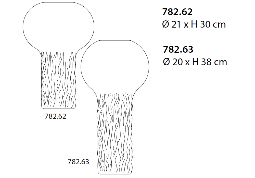 | Dimensiones | Ø 21 x H 30 cm; Ø 20 x H 38 cm. |
