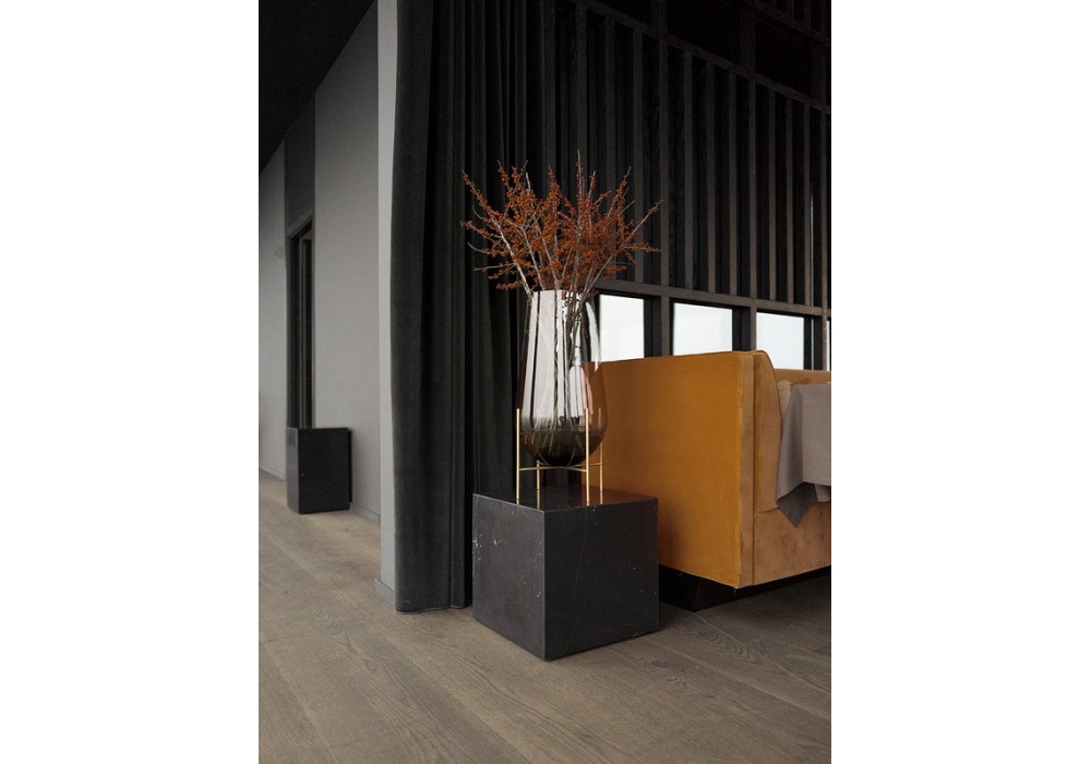 Échasse M/L diseñado por Theresa Rand para Audo Copenhagen es un jarrón de vidrio soplado y patas de latón macizo. Disponible en diferentes acabados y medidas.
