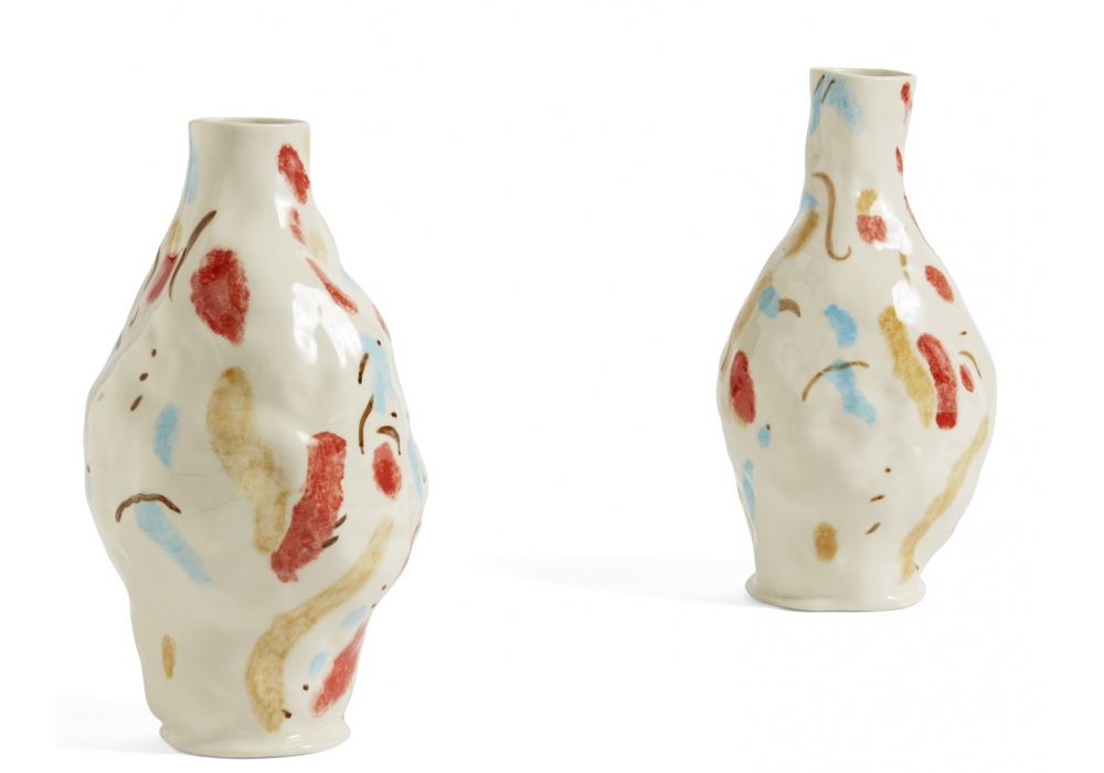 Jessica Hans diseñado por Jessica Hans para Hay es un jarrón de gres de forma irregular hecho y decorado a mano. Disponible en 2 modelos.