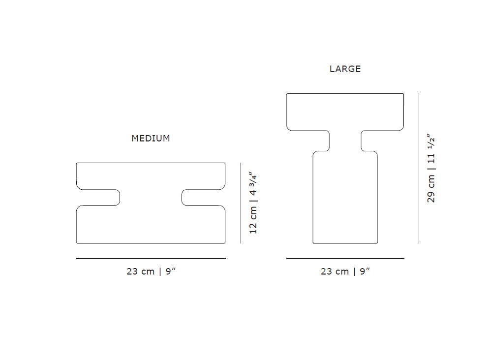 | Dimensiones | Medium_ Ø 23 x H 12 cm; Large_ Ø 23 x H 29 cm. |