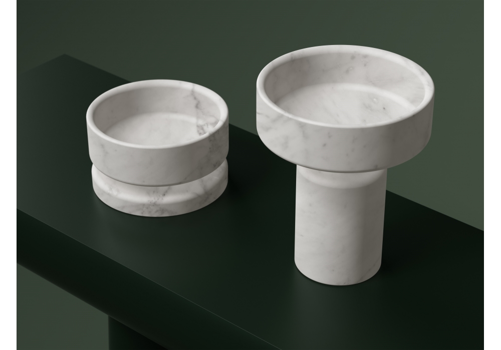 Mangiarotti Marbles diseñado por Angelo Mangiarotti para Karakter es un jarrón realizado en mármol Banswara. Disponible en 2 dimensiones.