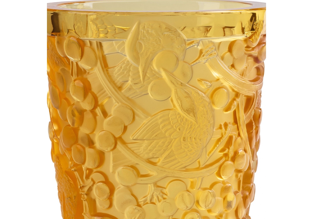 Merles et Raisins diseñado por René Lalique para Lalique es un jarrón hecho a mano en cristal. Disponible en diferentes acabados.
