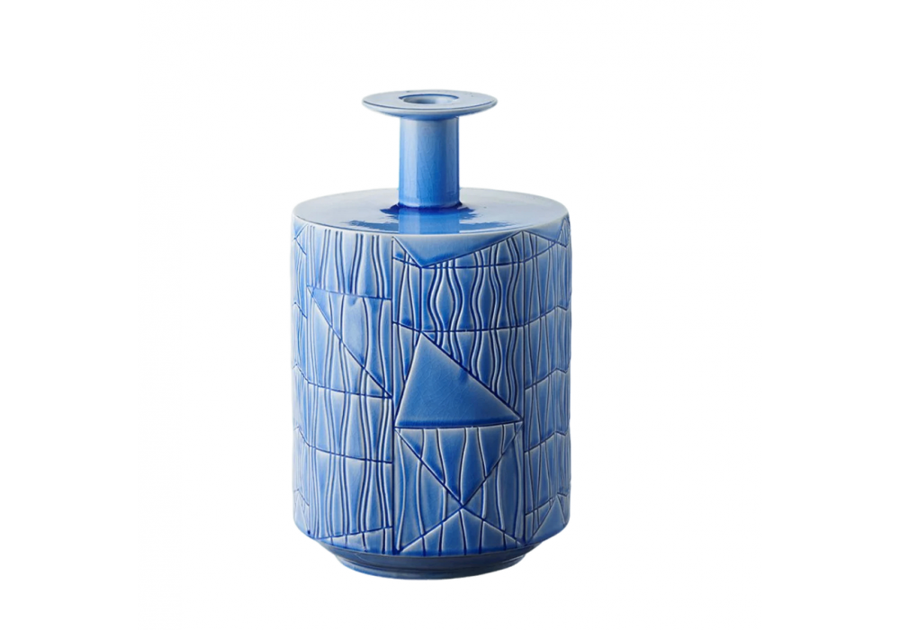 Guadalupe Vase A diseñada por Bethan Laura Wood para Bitossi Ceramiche es una colección de jarrones realizados artesanalmente en arcilla fundida de color blanco, verde brillante cristalino o azul cielo o incluso azul craquelé.
