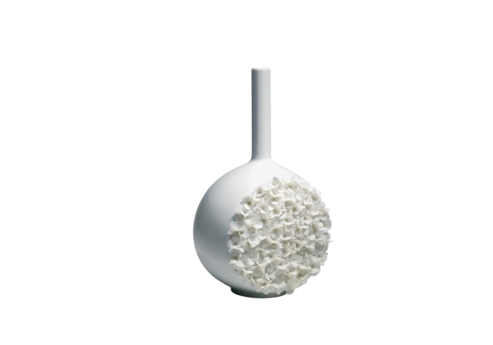 Flowers Tapestry firmado por Bodo Sperlein y esculpido por Dept. Diseño y Decoración para Lladró es un jarrón realizado en porcelana con acabado blanco brillante y con pequeñas flores todo ello hecho a mano por los artistas de Lladró.
