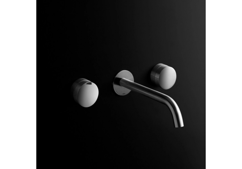 Eclipse diseñado por Studiocharlie para Boffi es un caño lavabo para pared realizado en acero inoxidable AISI 304. Disponible en acabados inoxidable satinado y gris PVD.
