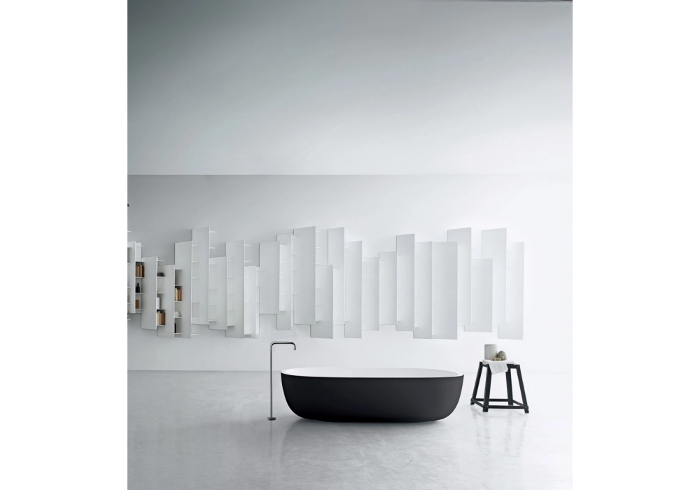 Liquid diseñada por Piero Lissoni para Boffi es una boca de pie realizada en latón cromado. Disponible en versiones para lavabo y bañera.