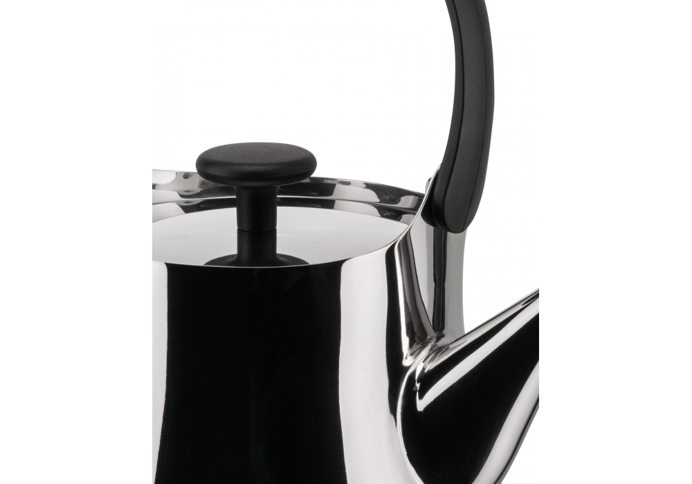 Cha diseñado por Naoto Fukasawa para Alessi es un hervidor/tetera realizado en acero inoxidable 18/10 con asa en resina termoplástica negra. Fondo de acero magnético apto para cocinas de inducción.