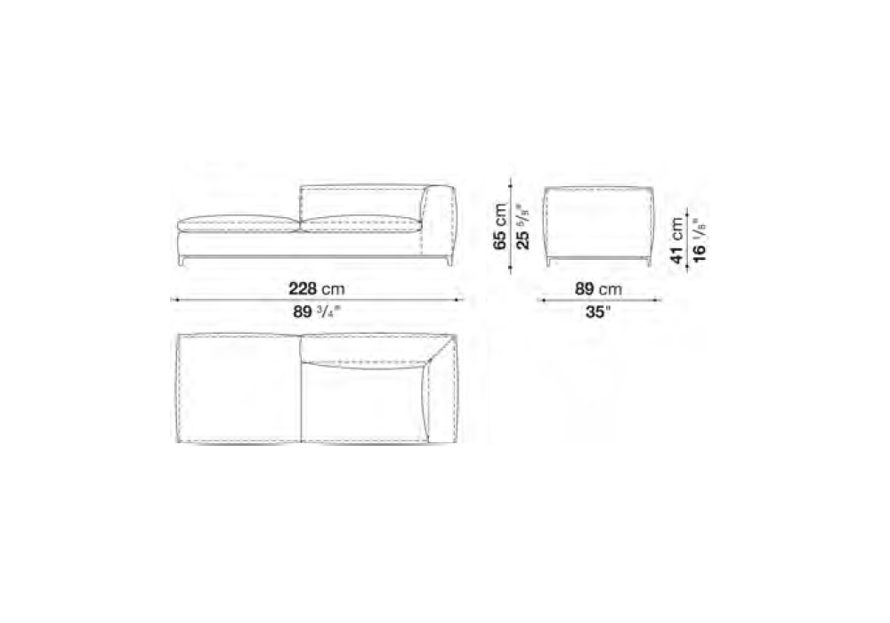 Michel Club diseñada por Antonio Citterio para B&B Italia es una chaise longue realizada con base de metal y revestimiento de tela. Cojines incluidos.
