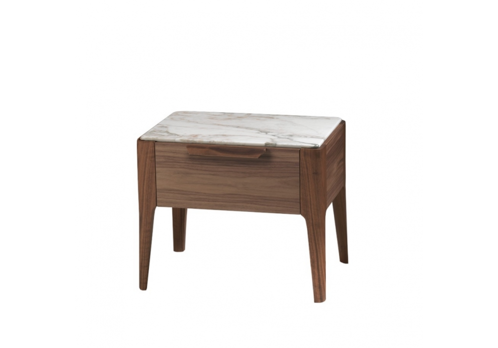 Ziggy Night 1 diseñada por Carlo Ballabio para Porada es una mesita de noche contemporánea que combina una estructura de madera con un lujoso sobre de mármol.