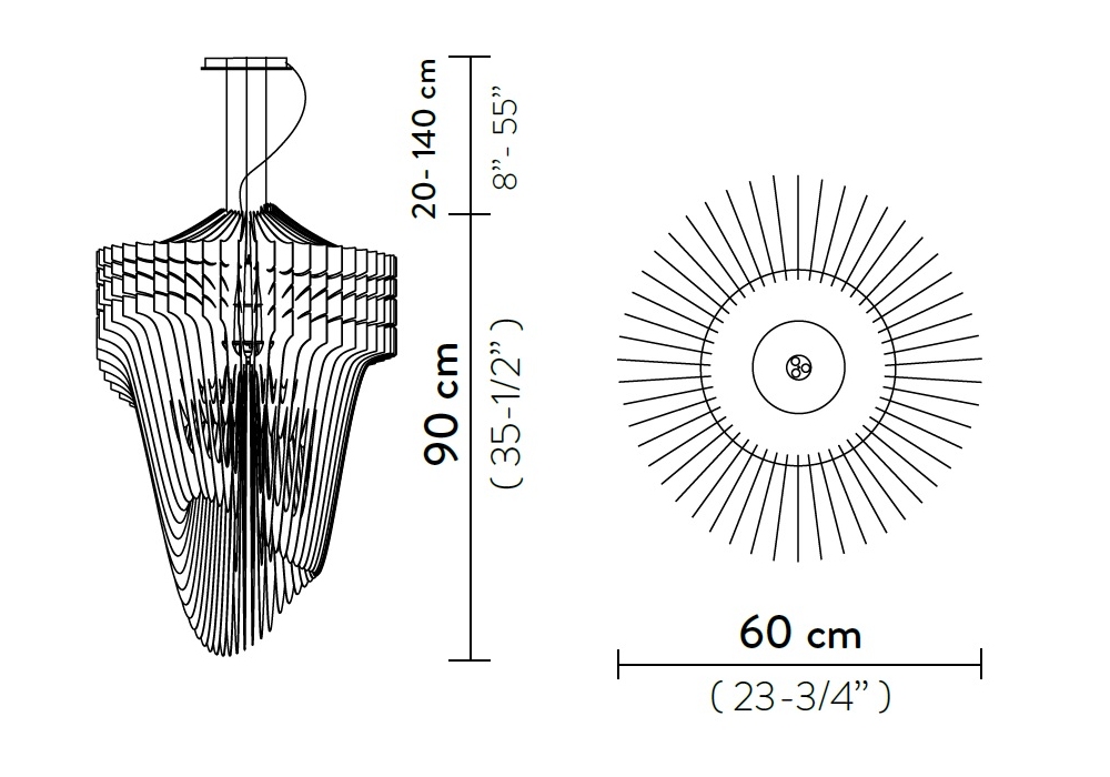 Aria Transparent diseñada por Zaha Hadid para Slamp es una lámpara de suspensión con 50 superficies transparentes, encontrándose con la luz de los ledes posicionados en sus ejes.
