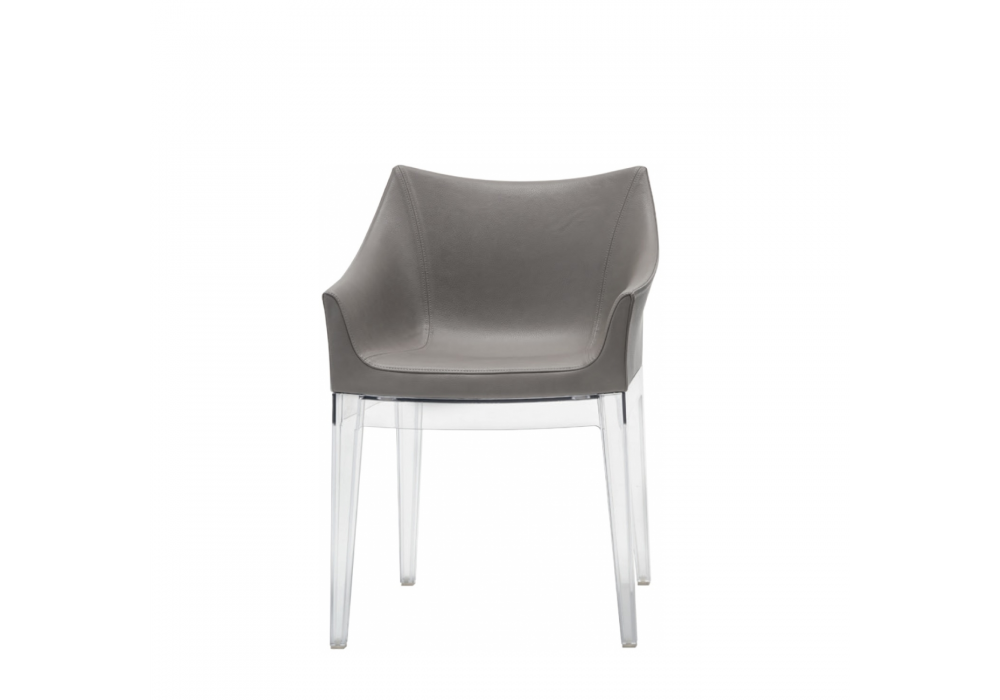 Madame diseñada por Philippe Starck para Kartell es un sillón pequeño disponible con un marco de policarbonato transparente y una carcasa de poliuretano con revestimiento de cuero ecológico.