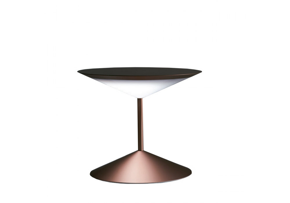 Narciso diseñada por Nicola Gallizia para Penta es una lámpara de mesa con estructura metálica en acabado oro rosa mate. Con altavoz de audio Bluetooth.