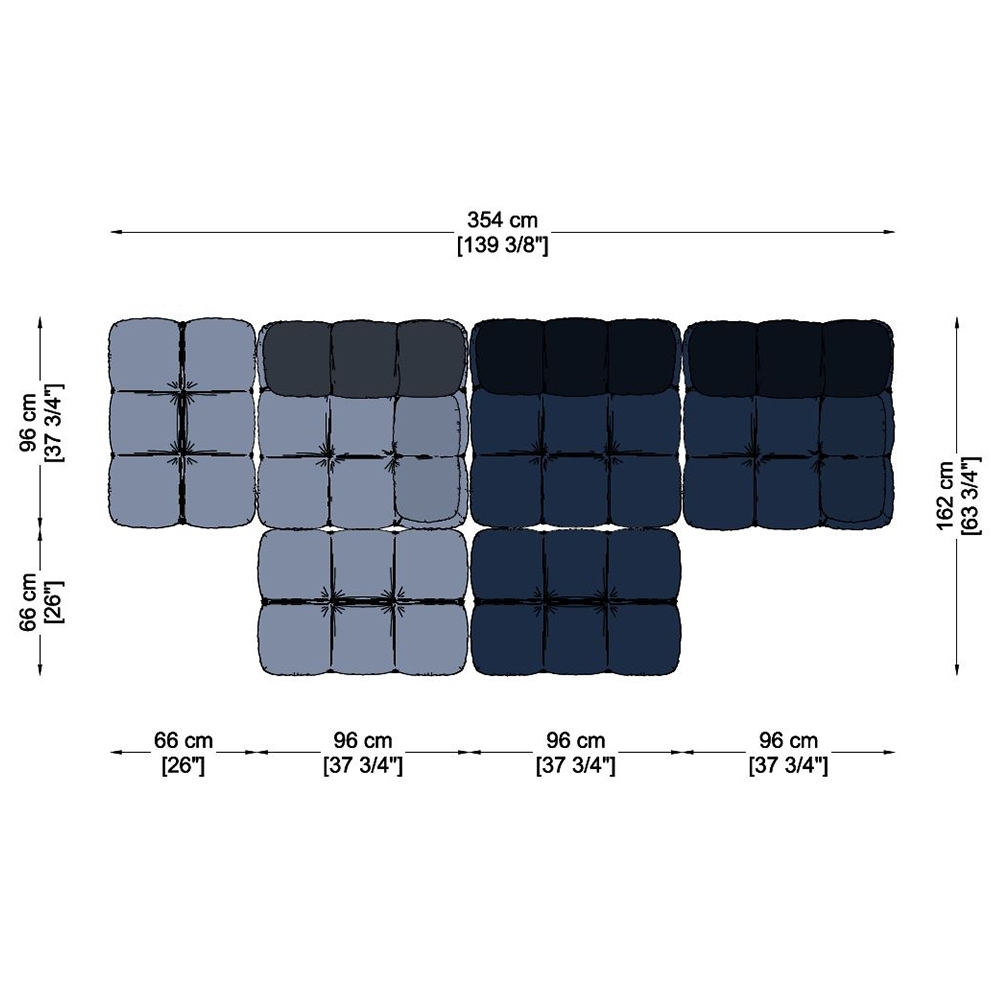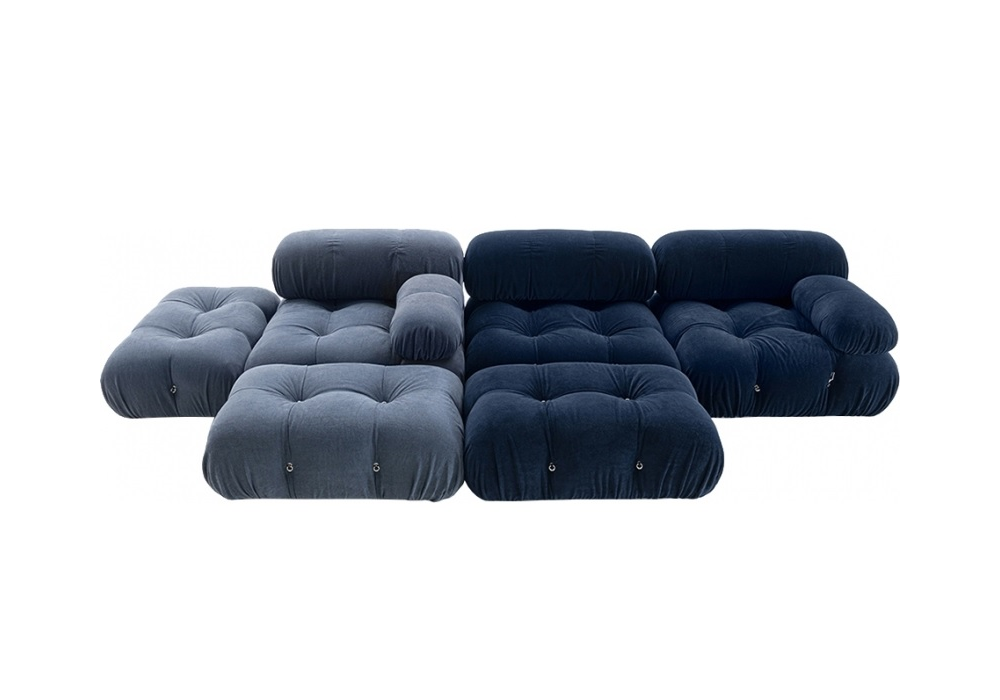 El icónico sofá Camaleonda diseñado por Mario Bellini es propuesto nuevamente por B&B Italia en 2020 manteniendo el diseño original. Está realizado en asiento acolchado de poliuretano acolchado obtenido con un sistema de cable concebido por el diseñador. Disponible para entrega inmediata en una composición de 6 módulos.