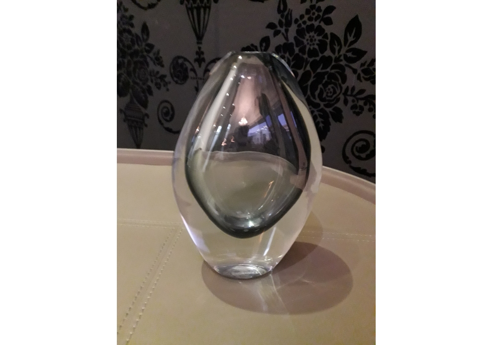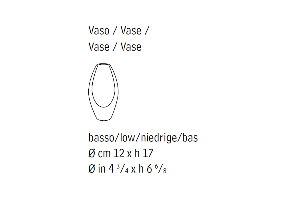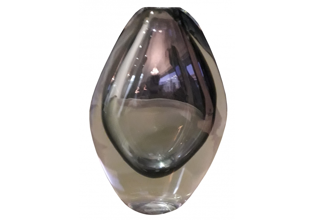 Oliva diseñado por Giorgetti es un jarrón en vidrio soplado a boca. Trabajo característico de vidrio macizo con núcleo hundido en dos capas de color y exterior de cristal.