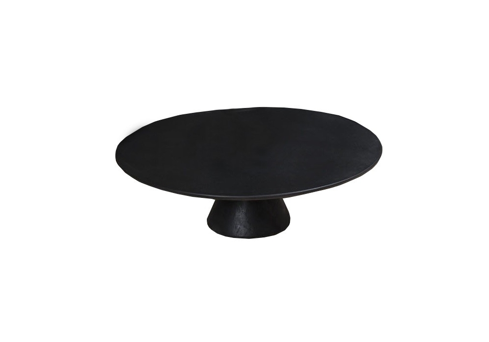 Jove diseñada por Draga & Aurel para Baxter es una mesita con estructura y tapa realizada en mezcla de vetas de hormigón gris carbón con arenilla de mármol negro ébano.