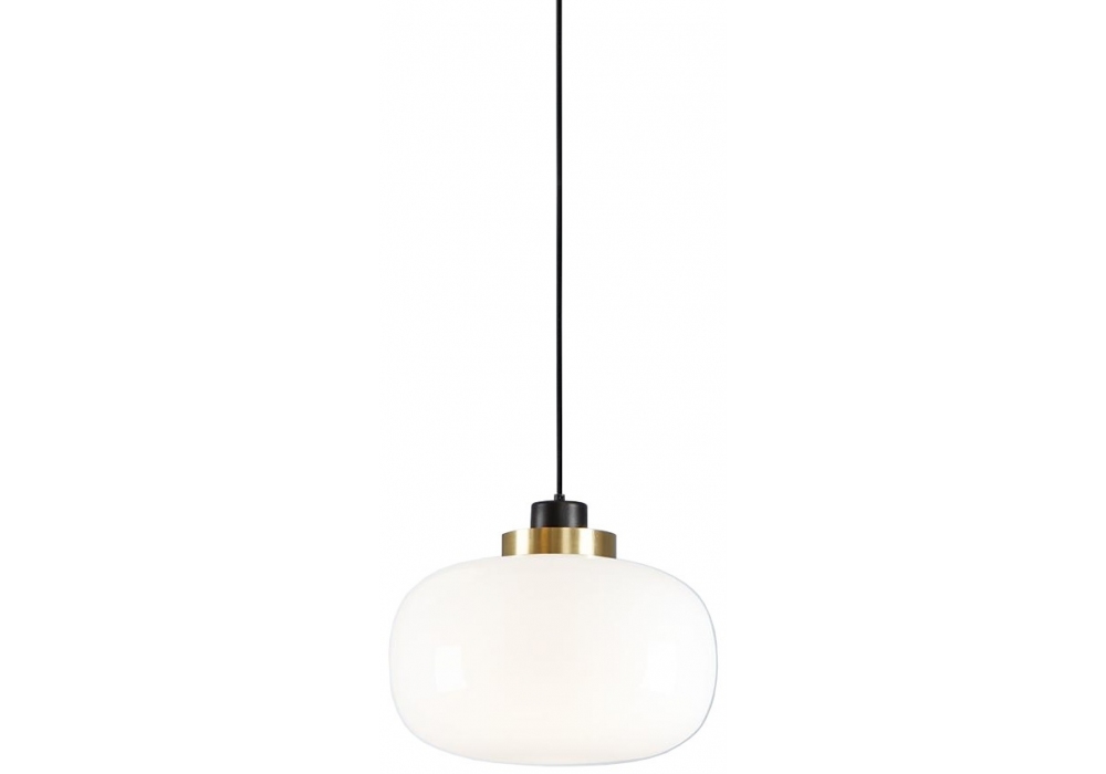 557 Leiger diseñada por Corrado Dotti para Tooy es una lámpara de suspensión LED con estructura en color negro arena, conexión de lámpara en latón cepillado, mientras que el difusor es de vidrio soplado blanco opalino. LED incluido.