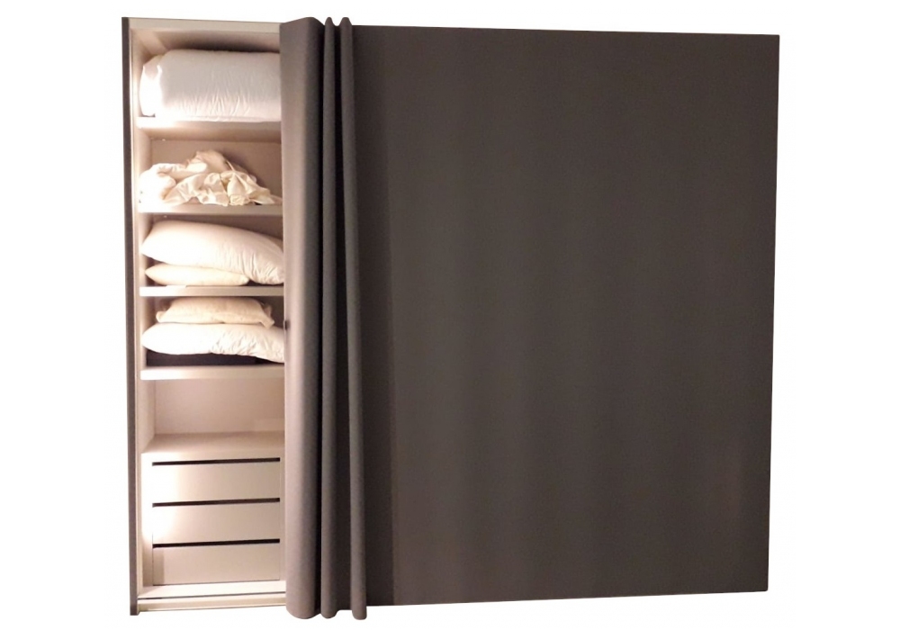 Et Voilà diseñado por Daniele Lago es un armario con una sola puerta de tela. Tiene iluminación interna.