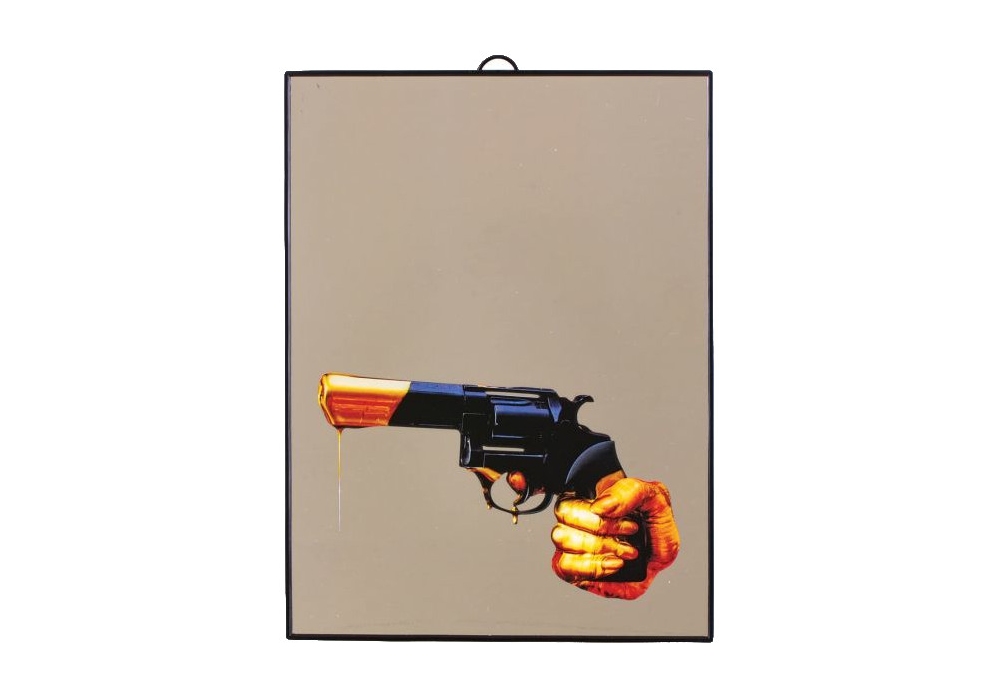 Revolver diseñado por Toiletpaper para Seletti es un espejo con marco de plástico.