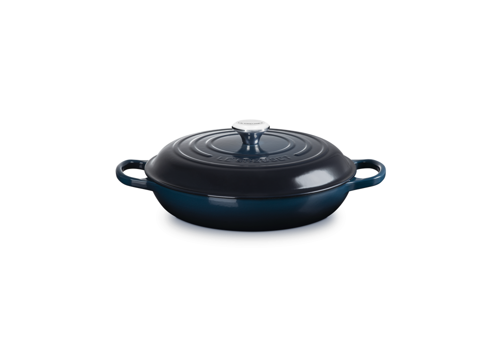 Tegame Basso Rotondo Evolution 30 diseñada por Le Creuset es una cazuela baja redonda de hierro fundido.
