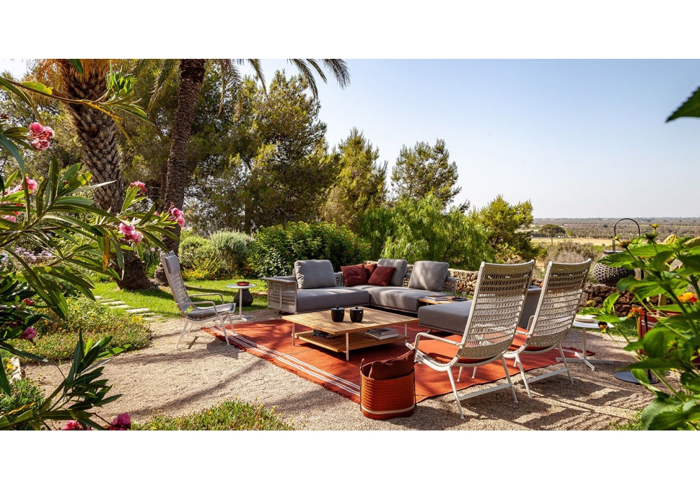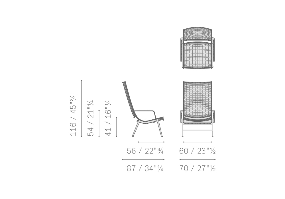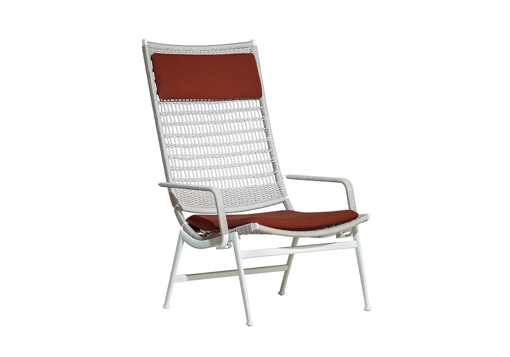 Solaria diseñado por Ludovica y Roberto Palombo para Poltrona Frau es un sillón de exterior compuesto por una estructura de acero inoxidable con acabado pintado en polvo epoxi en color Chalk (RAL 9002). Respaldo y asiento caracterizados por un tejido particular con cuerda de polipropileno crudo y reposacabezas y cojín del asiento de fibra de poliéster con revestimiento de poliéster hidrófugo.