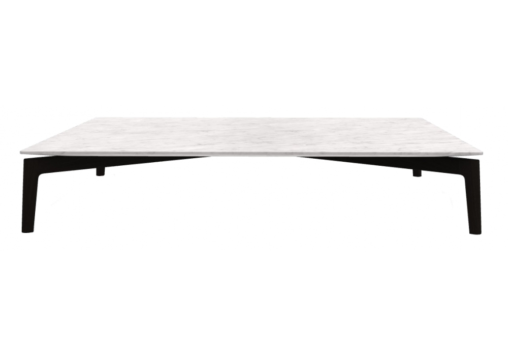 Everyday Life diseñada por Paul Smith para DePadova es una mesa baja con patas de fresno macizo teñido antracita acabado con barniz transparente al disolvente y tablero de mármol.