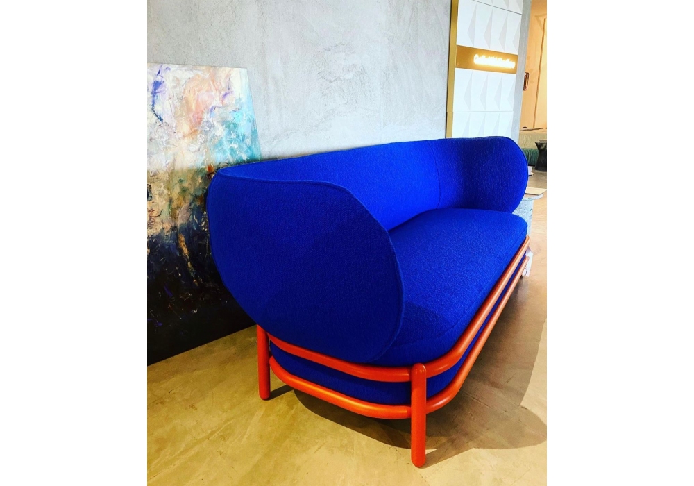 Luftballon 200 diseñado por Valter Cagna para Gebrüder Thonet Vienna es un sofá de tres plazas con estructura en haya curvada, asiento y respaldo tapizados con revestimiento de tela.
