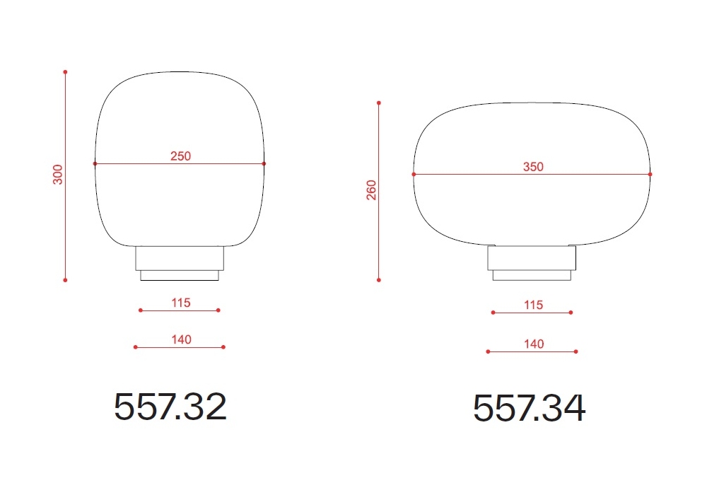 | Dimensiones | 557.32_ Ø 25 x H 30 cm; 557.34_ Ø 35 x H 26 cm |