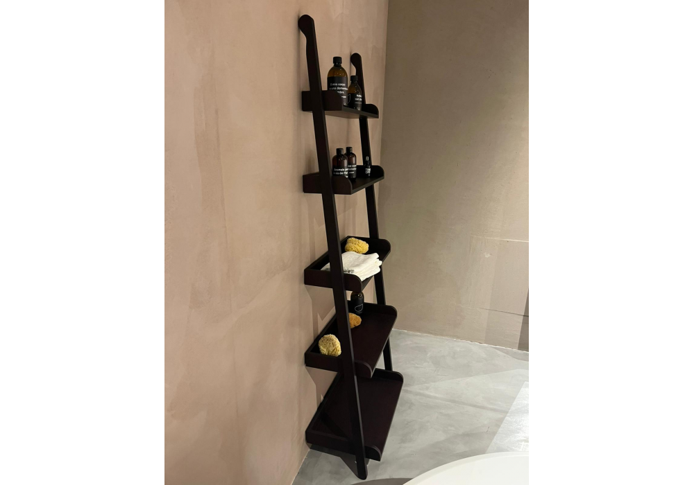 Stairs diseñado por Agape es un toallero realizado íntegramente en madera de roble marrón.