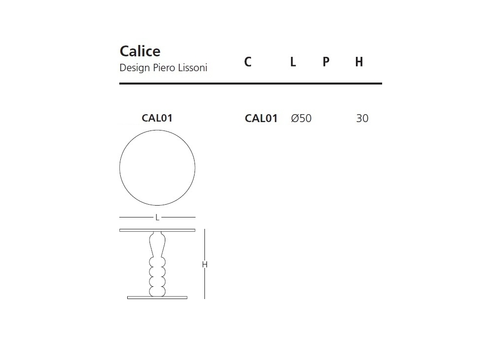 Calice diseñada por Piero Lissoni para Glas Italia es una mesa redonda con plano y pie en cristal templado lacado brillante. El soporte es de cristal soplado en forma de forma, con decoraciones grabadas en la superficie.