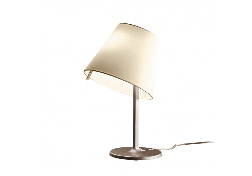 Melampo Notte diseñada por Adrien Gardère para Artemide es una lámpara de mesa compuesta por tecnopolímero, satén, aluminio y zamak. El difusor ofrece la posibilidad de ser inclinado en tres posiciones, para proyectar la luz como desees hasta el ángulo máximo de 30°.