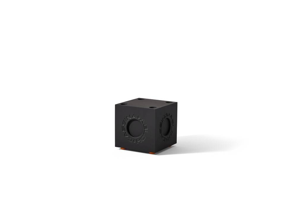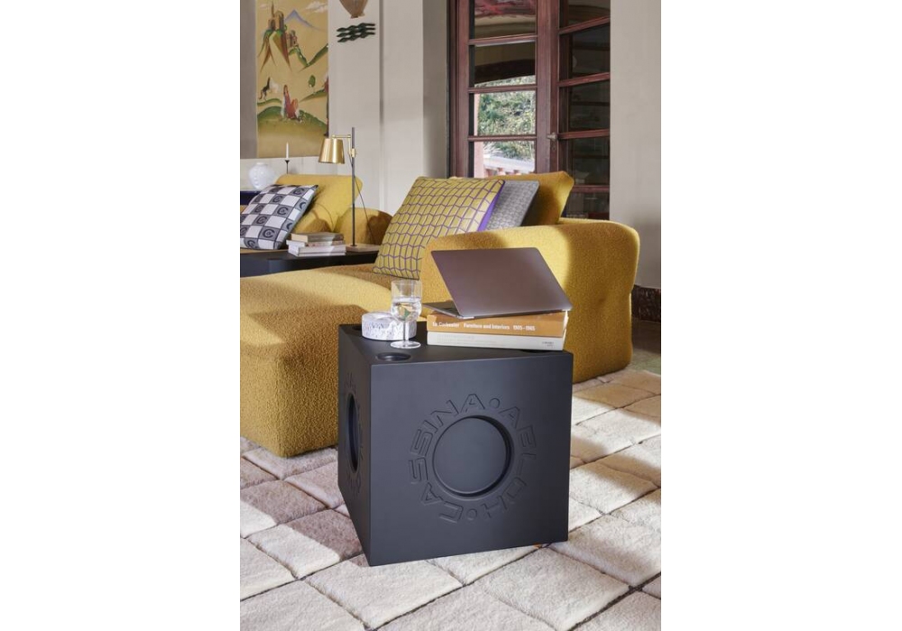 Modular Imagination diseñado por Virgil Abloh para Cassina es un puf, banco o mesita con estructura interna en madera reciclada, acolchado en poliuretano con un porcentaje de polioles de origen biológico y elastómero pintado. Pies naranjas en Hytrel, con inserciones roscadas de acero.