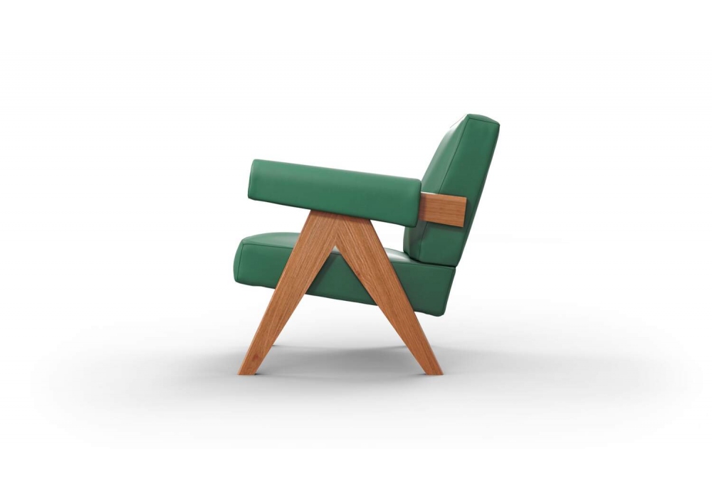 053 Capitol Complex Armchair Pro diseñada por Pierre Jeanneret para Cassina es una butaca con asiento y respaldo acolchados. Estructura en madera maciza de teca natural y revestimiento en piel.