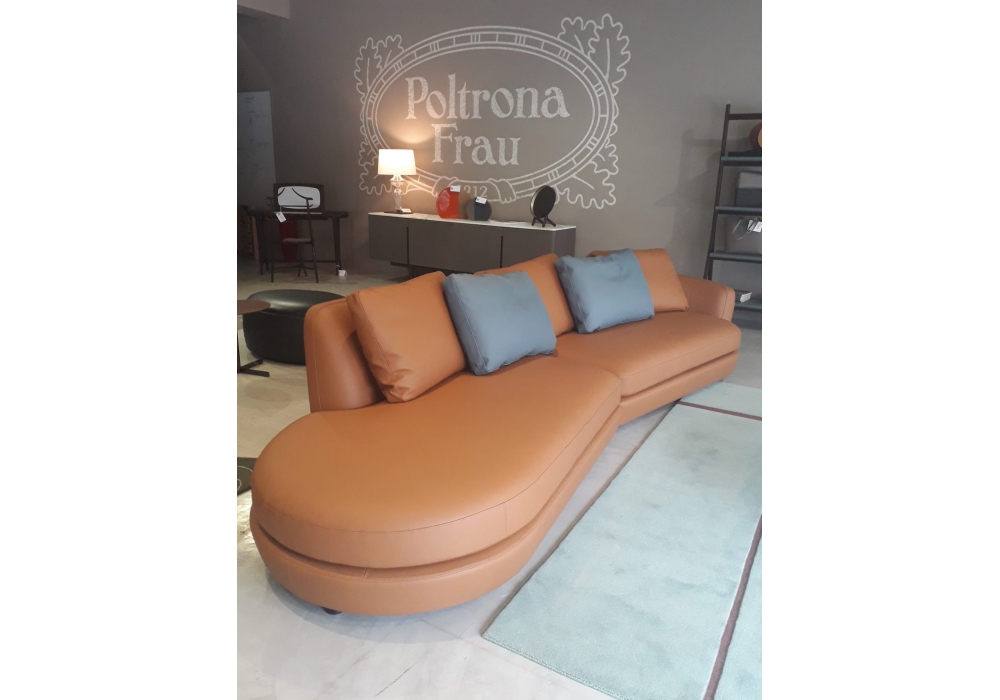 Duo Sofa diseñado por Roberto Lazzeroni para Poltrona Frau & Ceccotti Collezioni es un sofá tapizado en piel Pelle Frau SC 66 India. Las costuras son tono sobre tono. Estructura de respaldo y asiento realizada en contrachapado de abedul y patas cilíndricas en aluminio anodizado negro.