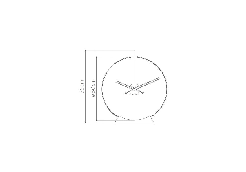 Aire G diseñado y producido por Nomon es un reloj de mesa con aros de fibra de vidrio en color negro, caja y detalles en latón pulido, base y agujas en madera de fresno acabado en nogal.