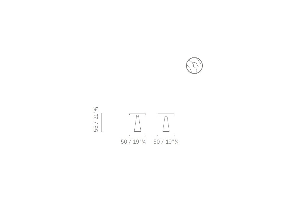 Duo Pedestal Table diseñada por Roberto Lazzeroni es una mesa auxiliar compuesta por tapa de mármol y estructura cónica en fresno macizo teñido.