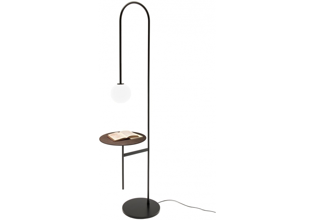 Light With a Table diseñada por Keiji Takeuchi para Living Divani es una lámpara de pie con mesa auxiliar integrada. Es realizada con una base y una estructura metálica en la que se inserta una mesa redonda a través de un inserto articulado de 180 °.