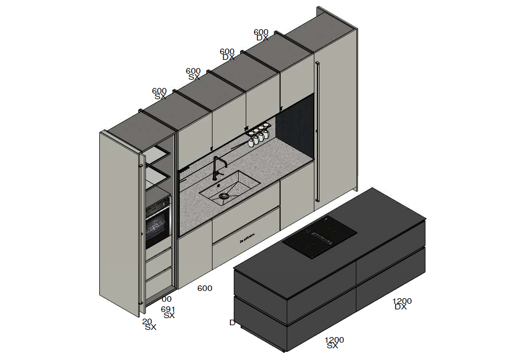 | Dimensiones | 388.1 x 69.2 x H 249 cm; Isola_ 246 x 95.1 x 87 cm. |