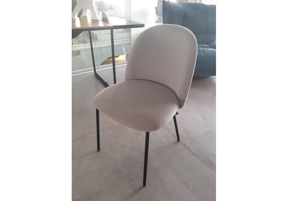 Tuka diseñada por Connubia es una silla con estructura de tubo metálico negro. Cuerpo con respaldo y asiento acolchado con tapizado fijo de tejido, color arena.