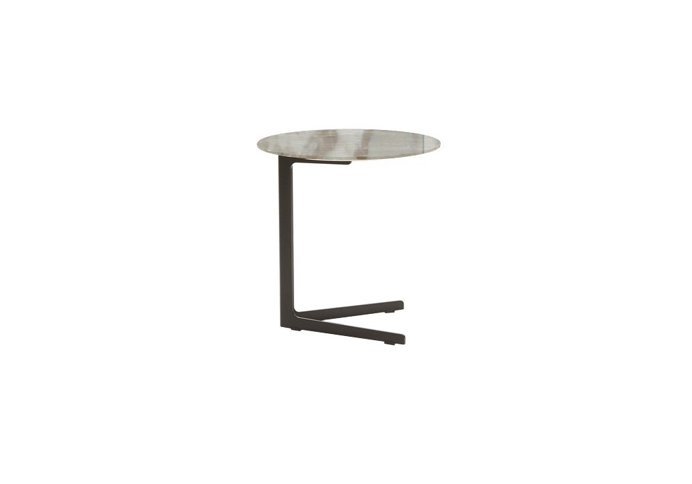 Baba diseñada por Roberto Barbieri para Poliform es una mesa de centro realizada con estructura de metal pintado y tapa de mármol liso.
